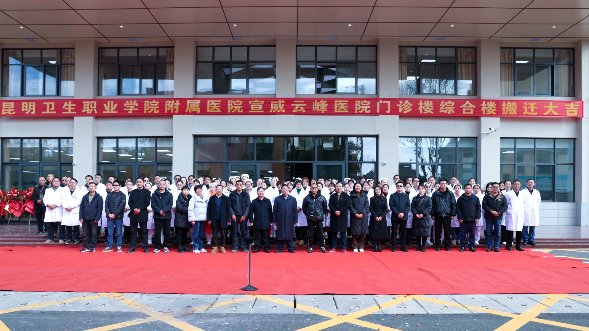龙正昌在讲话中对新楼落成搬迁表示祝贺,对医院在医疗服务、人才培养、公益惠民等方面的贡献表示肯定。他强调,医院要以此次搬迁为契机,秉持“患者至上、生命至上”理念,强化医疗质量、规范诊疗管理,守住医疗安全底线,同时依托学院资源优势,推动教学、临床、科研一体化发展;要优化服务流程,打造优质医疗健康平台,为健康云南、健康宣威建设注入新动能。