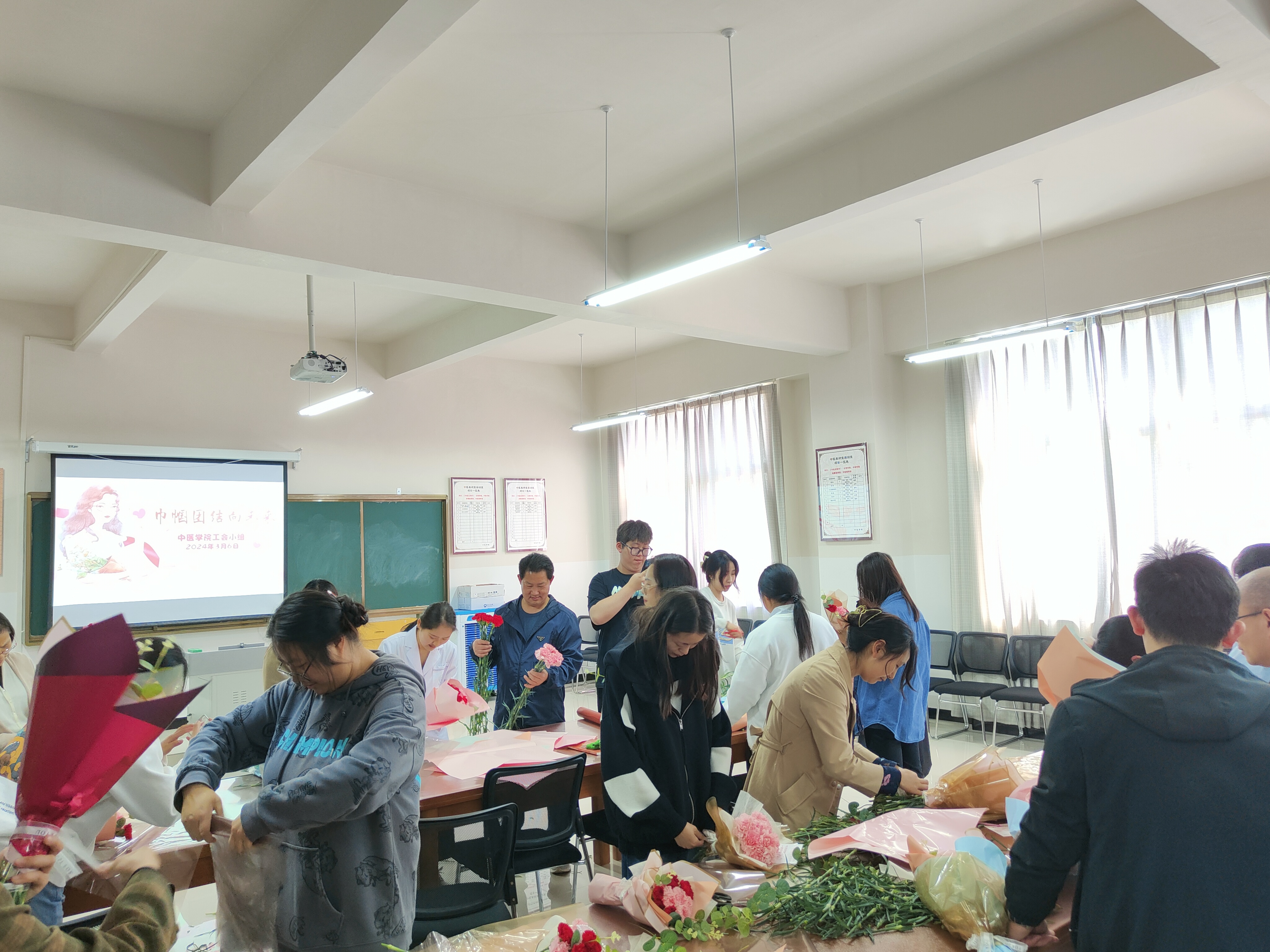 为深入贯彻落实党的二十大精神,充分展示新时代女性健康向上、踔厉奋发的巾帼风采。在第114个“三八”国际妇女节来临之际,中医学院直属党支部于2024年3月6日开展了以“巾帼心向党 同心向未来”为主题的“三八”国际妇女节庆祝活动,活动由中医学院直属党支部书记易斯坐同志主持,中医学院全体教职工参加活动。